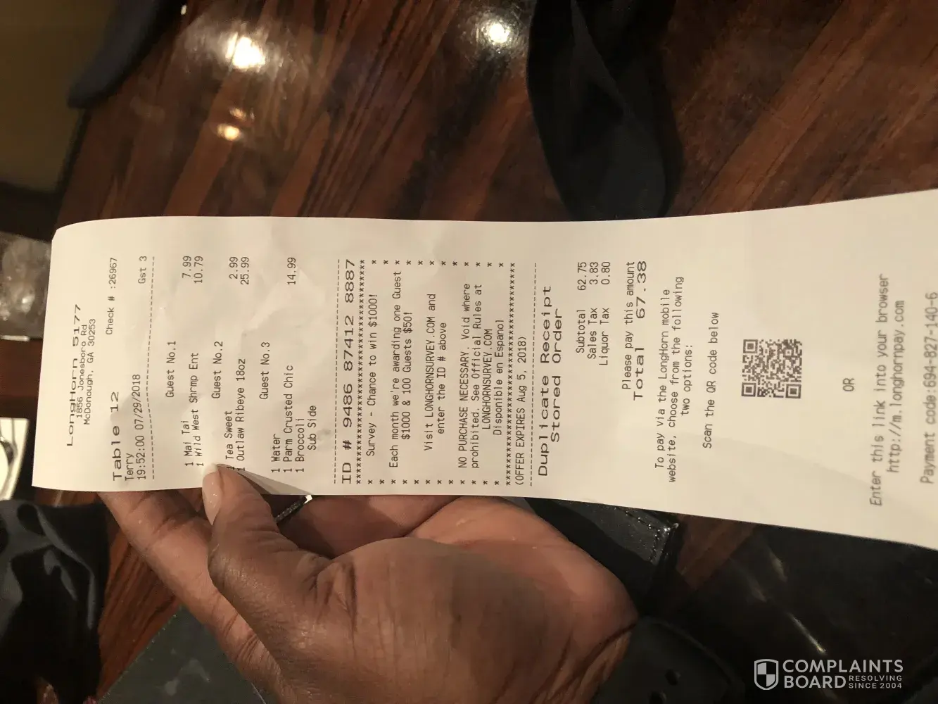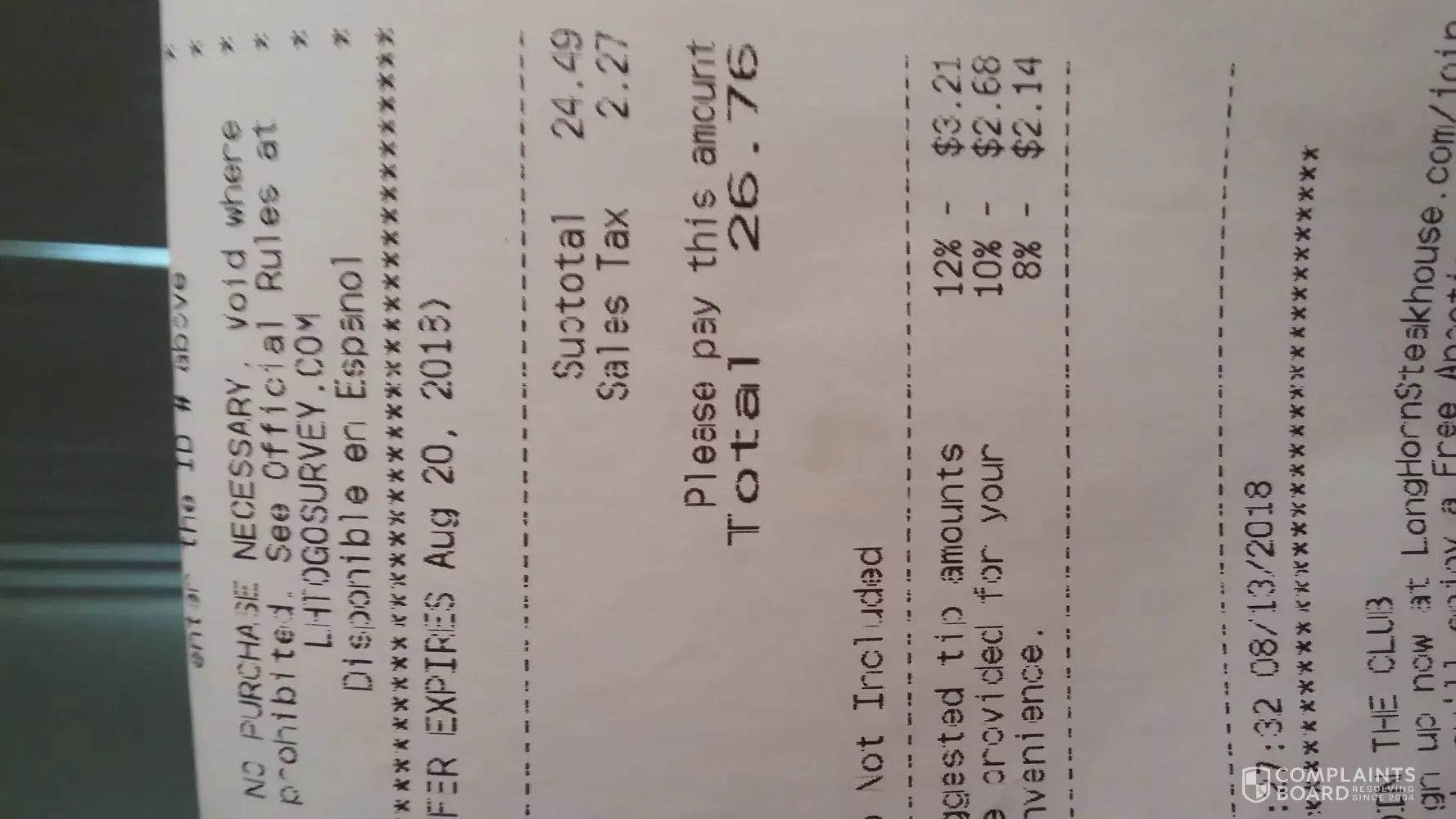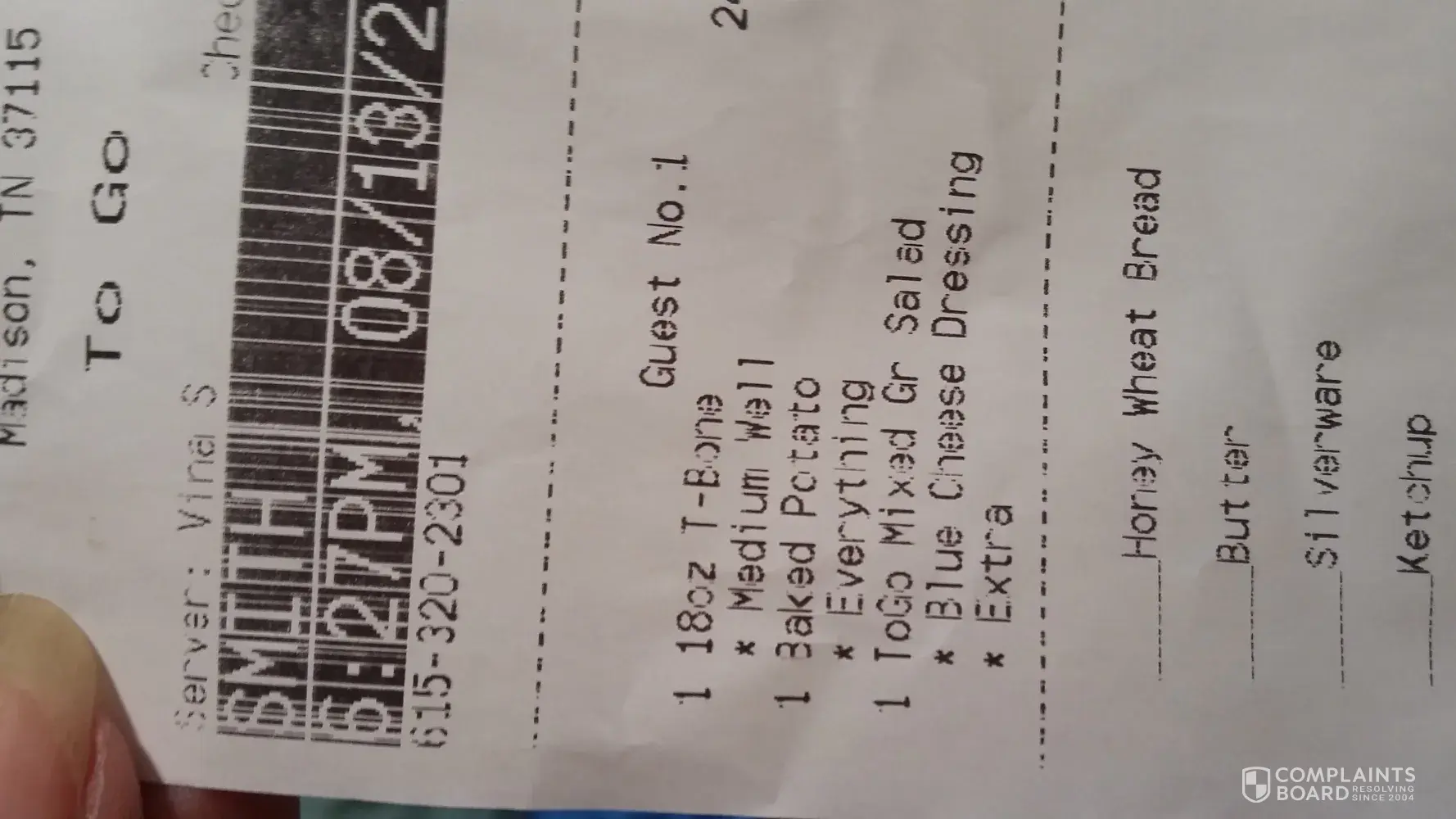 complainers so I emailed photo's of the Burnt T-Bone and a copy of my receipt to a customer service email address.