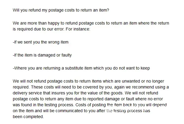 Company sent me the wrong item, I returned it and requested that they pay the return shipping fee, as it clearly states on their policy page that they will pay return shipping if it's their error. They refused to reimburse me because I didn't have the original post office receipt. I sent them a screenshot of the post office charges on my credit card bill with the date, location, etc. but they still won't refund me. Totally unacceptable given that they sent me the wrong item in the first place, and that there's nothing on their website indicating you have to provide the actual post office receipt in order for them to refund shipping charges.