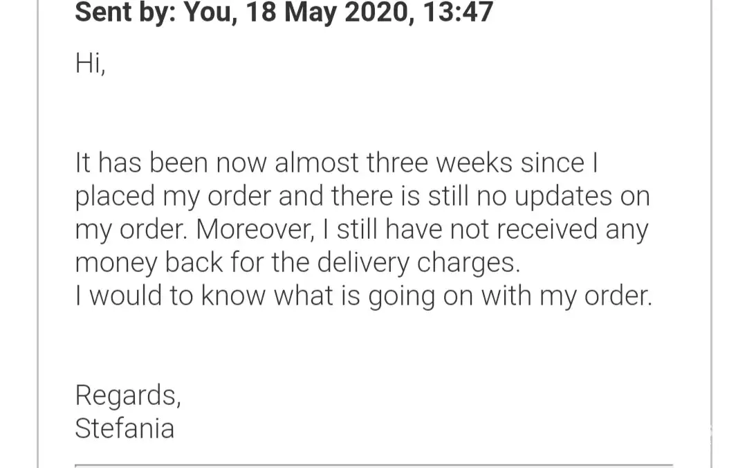 They have been lying to me and have misleading me. One time they tell me that they have dispatched the package and is with the courier and they investigating what is going on. Next thing they send me an email telling me tha actually my package is going to be sent after yesterday (19/05/20) and they will update me with a tracking number.