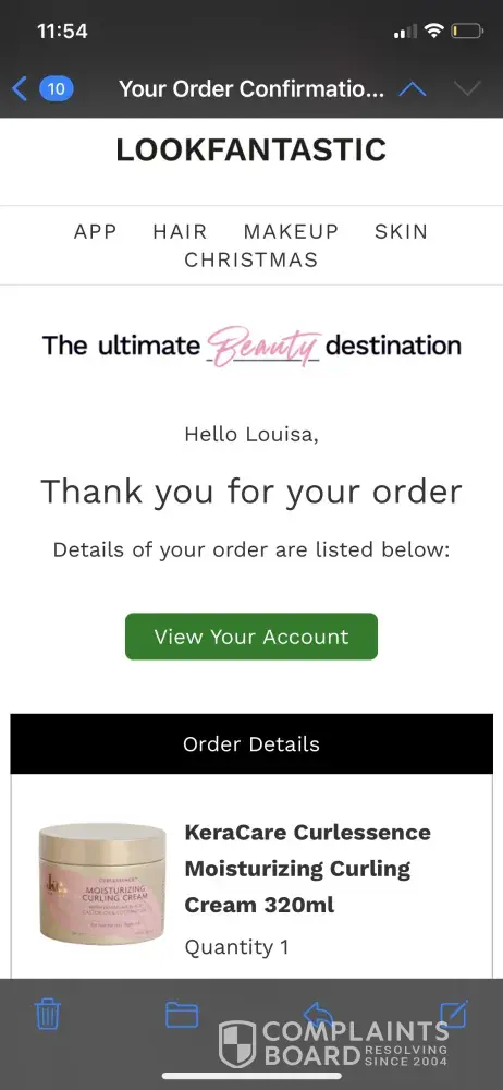 I then received 2 emails stating there was a problem with my order and no specifics as to what the issue was. I then received an email saying my ordered had been cancelled due to a pricing error on look fantastic' end, with no further information as to why. I made a complaint via Twitter and then had to follow up more than once before anyone responded.