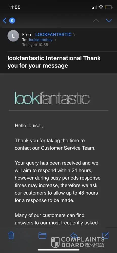 I am writing to express my serious disappointment about the poor customers service and response to my recent purchase from look fantastic.