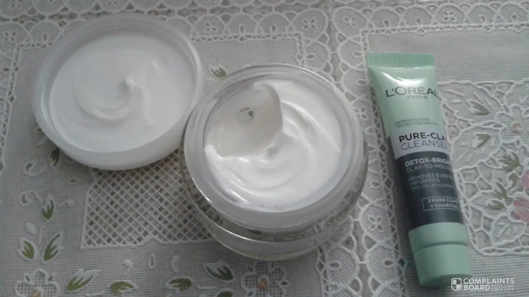 I bought a L'Oreal Wrinkle Expert day/night 45+ as a gift for my wife. The packaging was sealed, a sample tube of pure-clay cleanser was attached in the sealed plastic foil which was intact all over the carton box and the product. However, after unpacking and opening the jar, almost half of the cream was missing. I don't see where the slogan "Because We're...