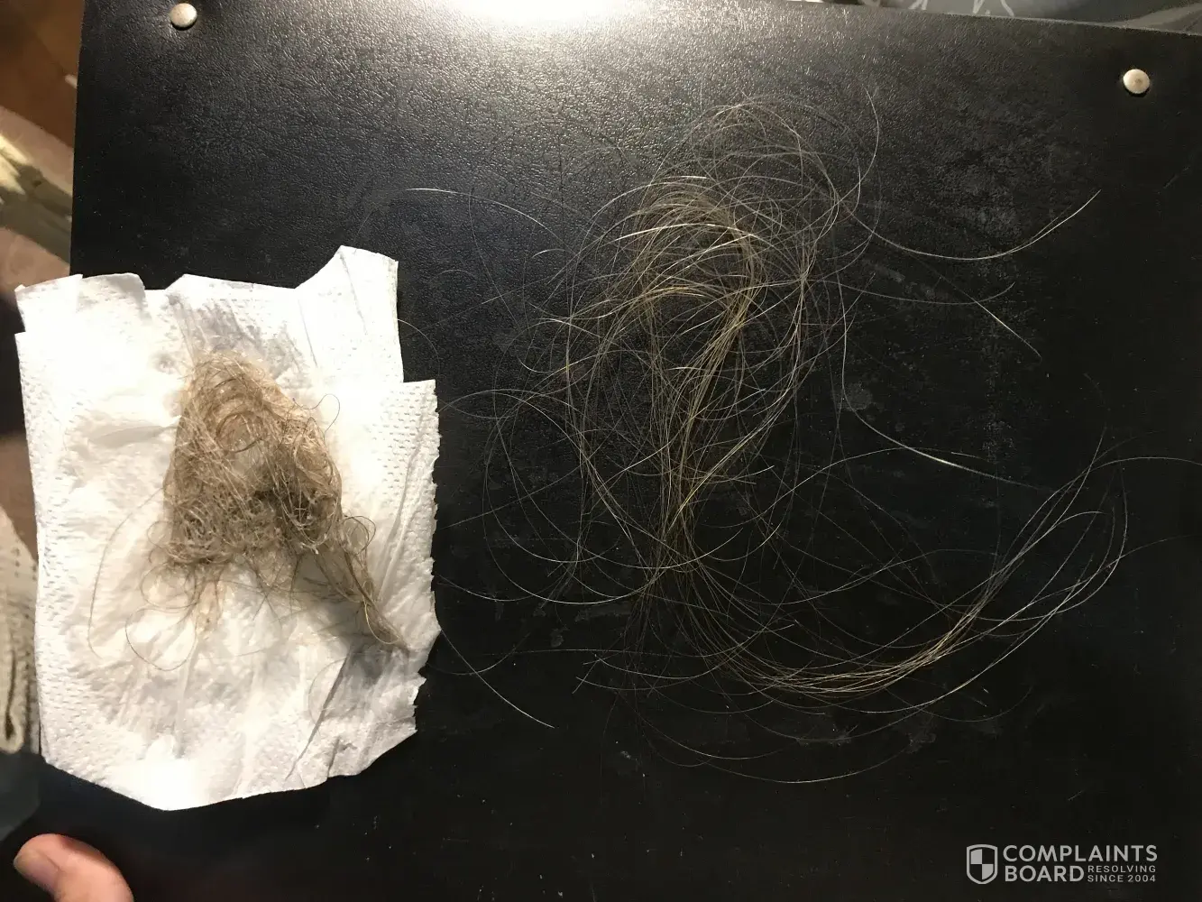 Below I have attatched photos of which. The one on the tissue is from the shower — we're talking only one shower. And the one on the black portion is after the shower. Now, this part of hair fall in the black portion happens more than five times a day. Even more sometimes. Don't you think that is a scary amount of hair fall lost in one day?!