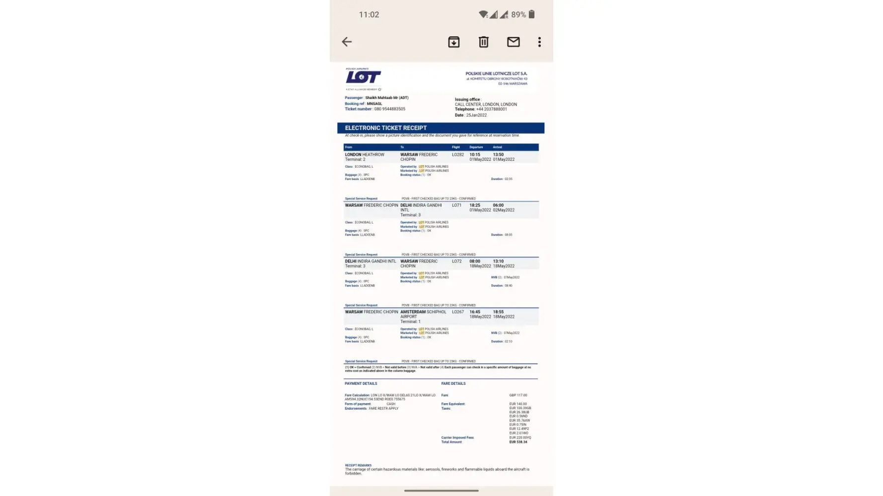 I had a booking with LOT Polish Airline Booking Ref MNSAGL And E- Ticket No: 080 [protected], Passenger name: Mr Mahtaab Shaikh