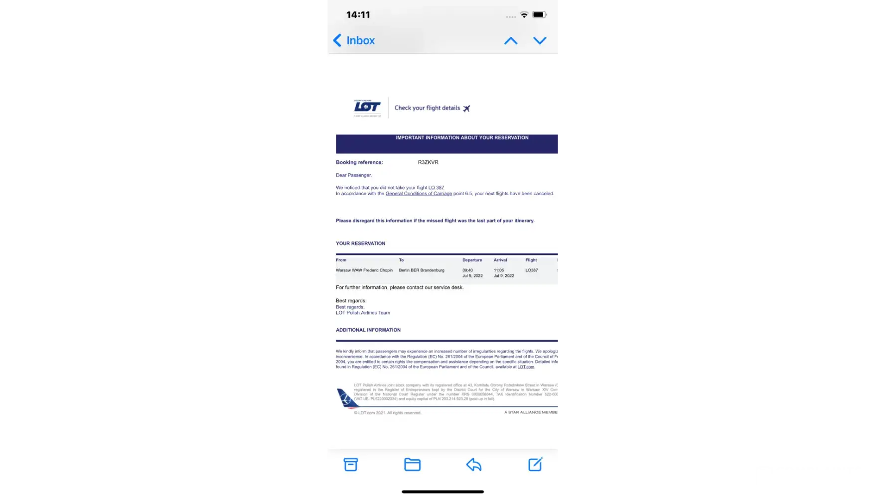 3. On July 9- I got a mail from Lot (the picture of the mail is attached)- that my reservation was canceled. and all that they drop the rest of the flights due to some well known regulation