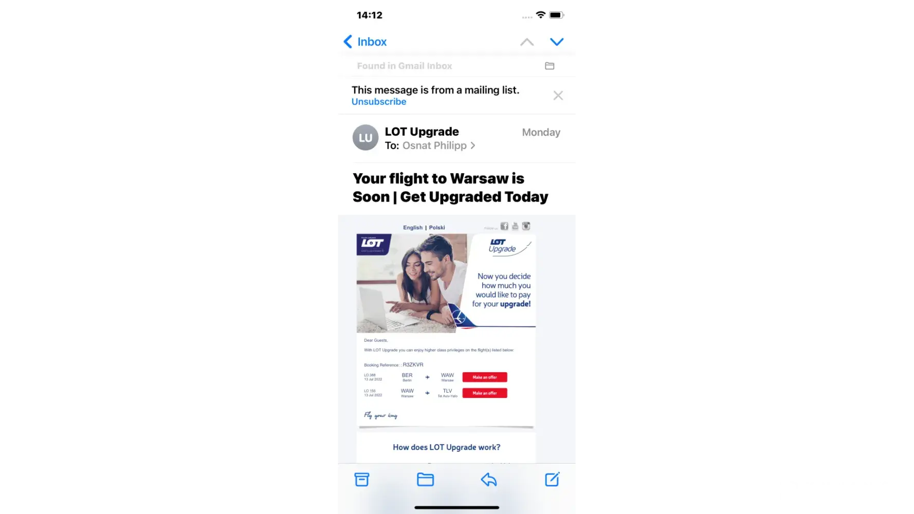 6. On the 11th - I got a mail from Lot suggesting to upgrade my flight - which to remind - were canceled. (attach is this mail)