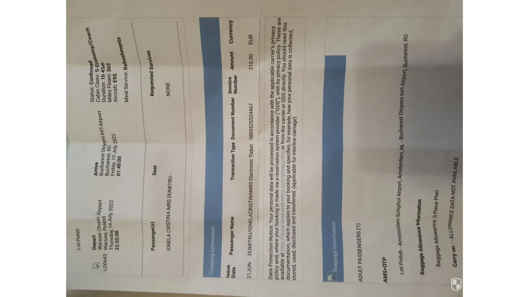 Ma numesc Dumitru Ionela Cristina si pe data de 14/07/2022 am avut neplacuta situatie dupa cum urmeaza in aeroportul din Amsterdam-Olanda la zborul Amsterdam -Schipol Airport catre Warsaw Chopin Airport Poland cu destinatia finala Bucuresti Otopeni Romania,cu compania Lot-polish L00268 14 IULIE 20222 ora 19.45 la check in mi s-a spus ca am standby seat si ca este foarte probabil sa nu am loc in avion si ca trebuie sa astept sa imbarce toti pasagerii iar daca ramane vreun loc disponibil voi urca si eu.