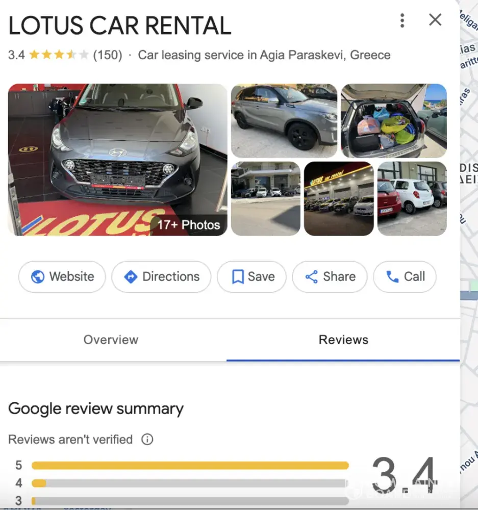 We are Lotus Car Rental, located in Keflavik, Iceland. Though we are sorry to hear your experience was poor with a company in Greece, we are not in any way affiliated nor associated to this company.