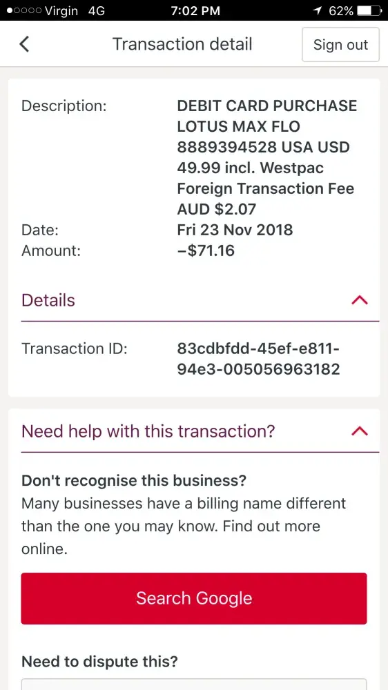 Lotus Leggings unauthorized payment, and never received a shipment.