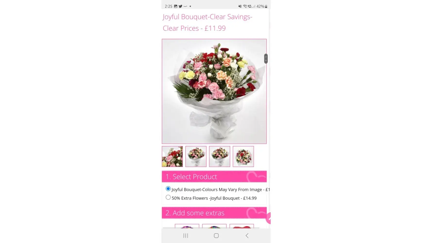 Took my money and no flowers arrived tried to contact them by their email i just get told I entered an invalid email address, tried phoning them and put in a queue then told to leave a message they will get back to me. Fed up of being ripped off with internet ordering will buy and deliver flowers myself in future.