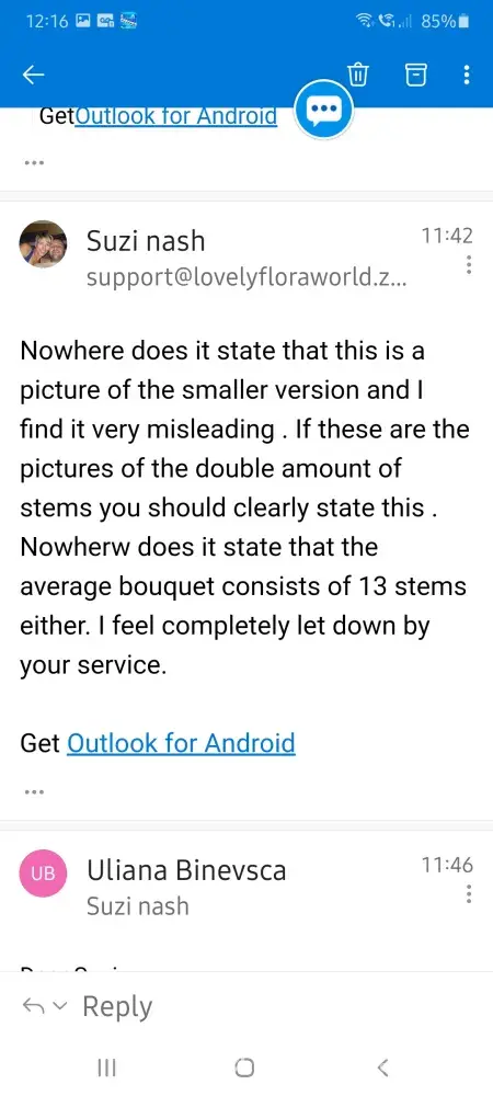 Lovely Flora World Product I am complaining about birthday flowers delivery.