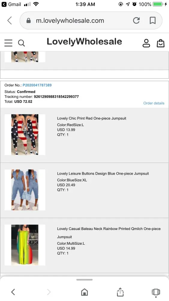 I placed an order on 3/2/20 for a trip planned on 4/4/20. I first noticed the status of the order remained at CONFIRMED for several days. I placed a ticket request inquiring about the update in status and was told "waiting for an item to become in stock, will ship when in stock". Well, 1. How can I order something that is out of stock 2. Why not reach out to me as a customer regarding this matter and 3. Why not just ship what's available? I was told again "do not worry, we will take care of you" and that what's available would be sent out. On 3/16 a tracking number was finally generated and the status on the tracking number was "USPS Currently Awaiting Package". Today, 3/24/20, the tracking status states DUPLICATE TRACKING. Which means two separate packages were shipped with the same number in which the USPS will return to sender for proper postage. This is my first and last dealing with LOVELY WHOLESALE.