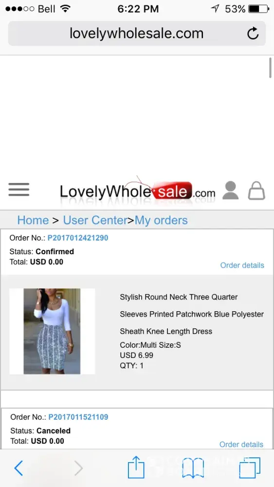 Please help I ordered a dress from lovely wholesale company in January.I have not received my item I've tried to contact Canada post cannot locate my order money was taken out of my account for this dress and I would like it back. It was a Stylish Round Neck Three Quarter Sleeves Printed Patchwork Blue Polyester Sheath Knee Length Dress my tracking number is RH360819688CN