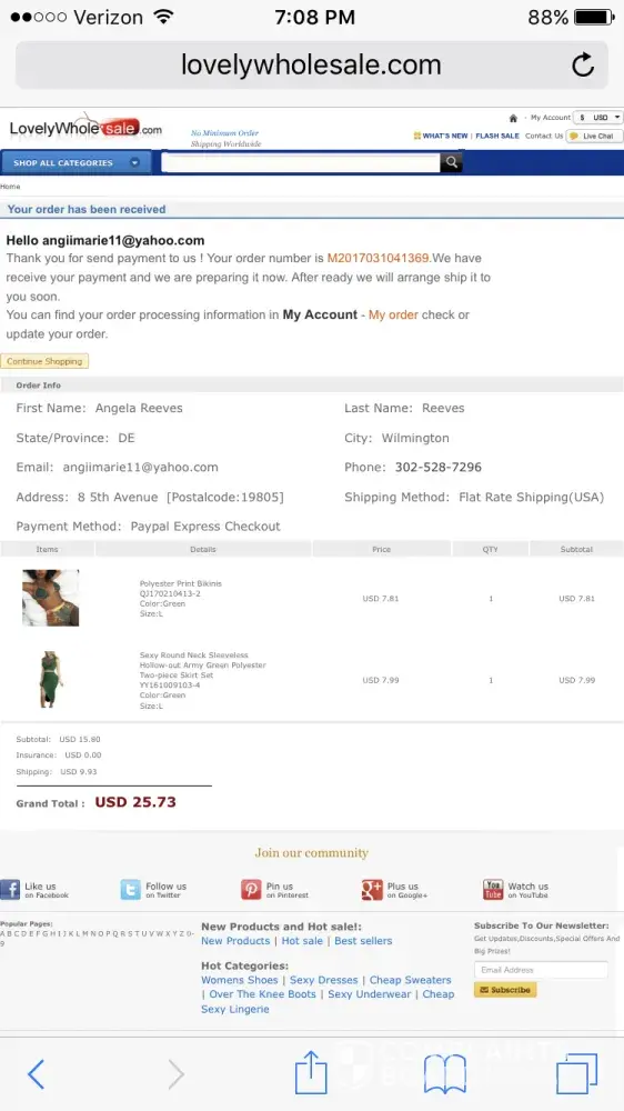 I bought something from Lovelywholesale and they took my money right away but I did not receive any payment confirmations and that was strange. I tried to contact them but they did not reply and that moment I felt that something was wrong.