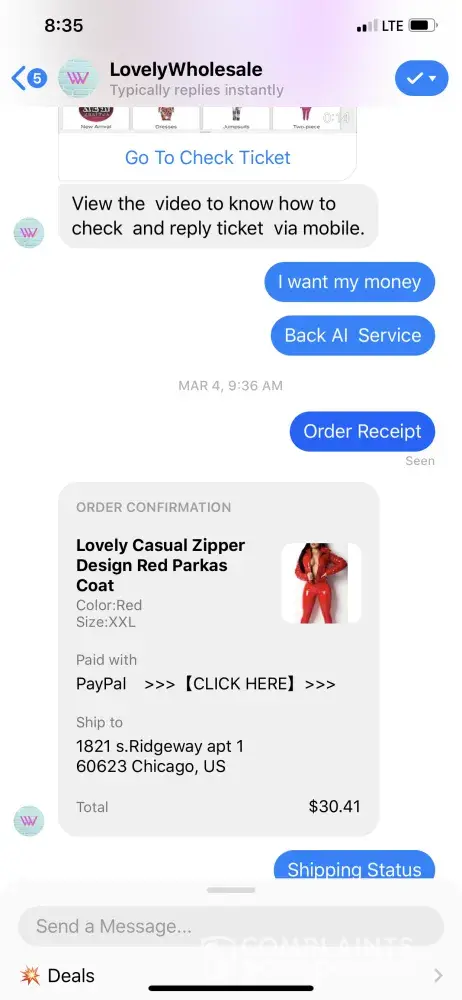 My name is Ebunlomo Godbless.I have ordered for over 2 weeks now and I have not received my my order. I need to travel with my parcel next week. I need my order to be delivered this is my first time ordering with lovelywholsale and I'm disappointed already . I have been sending several emails with no response, send several tickets through their website and also on Facebook messager . They don't have a real customer person to talk to and I've not heard any response from them. I spent over 400$ on my order and this is beginning to get fraustrating