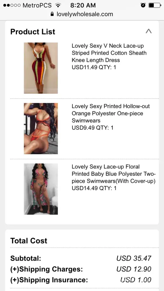 Lovely wholesale is a complete a waste of time and money. Now don't get me wrong I've ordered here before and never had a problem until now. I placed an order about two weeks ago and just received it last week but three of my outfits were missing. I've been trying consistently to reach out, but everytime I go to submit a ticket ut says Error can't connect. I am extremely upset because I was charged for these items but I haven't received them and they know they did not send ne all of my peices. The items I did reveive were extra small and non-fitting although I ordered bigger than my normal size they still don't fit. They don't even have a customer service number. I would strongly suggest you shop on another sight, this one is very deceiving. They take your money and don't care what they send to you, and it's difficult and time- consuming trying to get a refund.