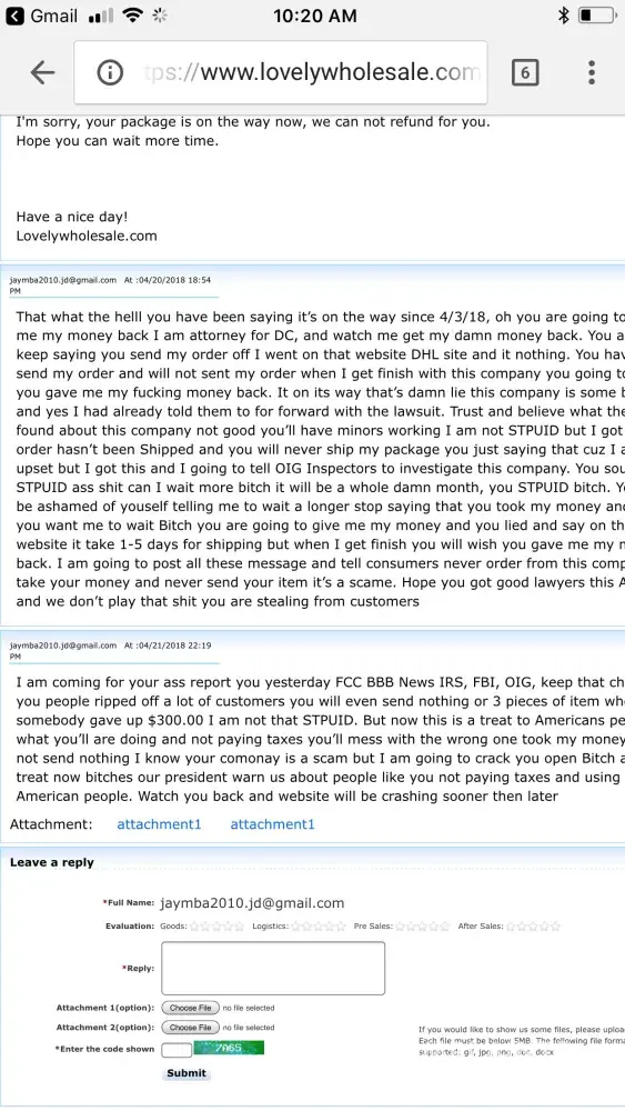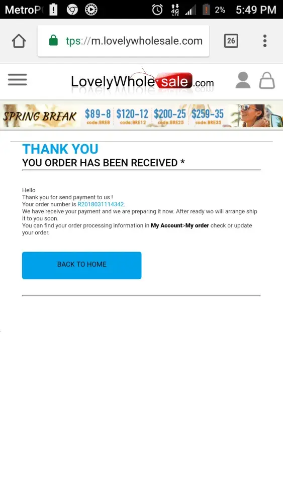 I ordered from lovely wholesale on 2/24/2018. I haven't gotten my order yet, every number they give you does not exist. I've ordered from them before and had no problems. But they're quick to take our money but when we need answers we cant get anybody from the company at all. They gave me two different tracking numbers, none of them work. Also the order numbers do not work as well as the phone number they gave doesn't work. I really feel like if this company is out to just take people money it should be shut down.