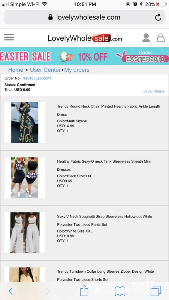 I purchased three items from the loveleywholesale site, which are two bikin suits and one dress. I have received an email about a payment when it was paid in full and only has two items not the three i've purchased. My order number is o2018031974186 and also took screen shots of item and the total that was paid in full. Thank you and have a great day