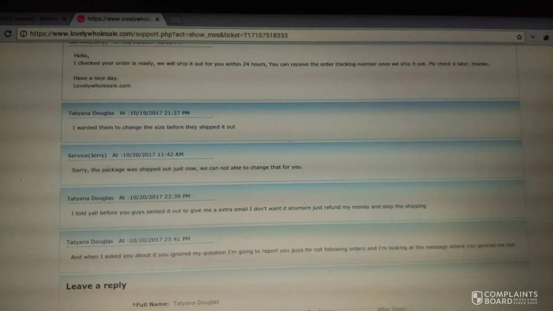 They will type a few words to me and tell me" have a nice day". Sometimes it pays to listen when people are trying to tell you something about a company. I am trying to keep you from falling into their trap. I will not recommend anybody to do business with lovelywhole because these people are crooked as 2 left shoes. Before you try to do business with them. My advice to you is go to their complaint website and when you get through reading about what people are saying about them. I'm pretty sure you will change your mind.