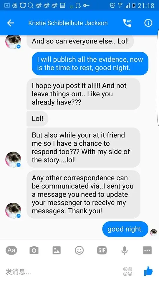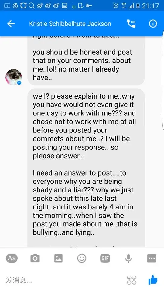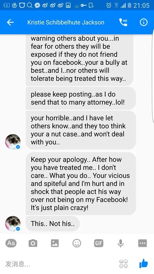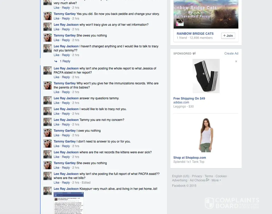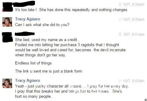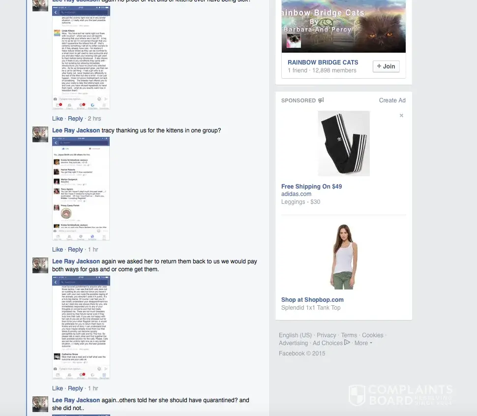 And finally, Kristie - this is directed towards you. By mentioning my employer, who has nothing to do with the exchange of these kittens, you have finally crossed a line that will not be tolerated. I have an attorney who has been sitting on the fence that will gladly take it from here and engage representing both me and my employer. And as long as I'm willing to pay for their travel, I have plenty of people that are willing to join me in a courtroom to share their experiences with you.