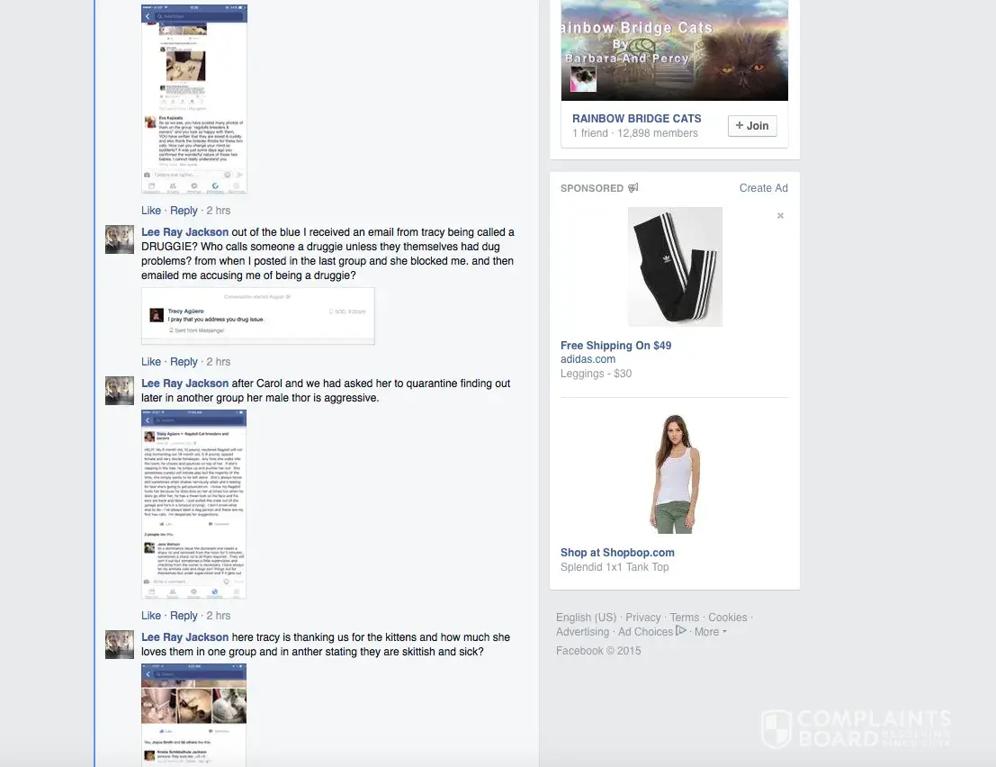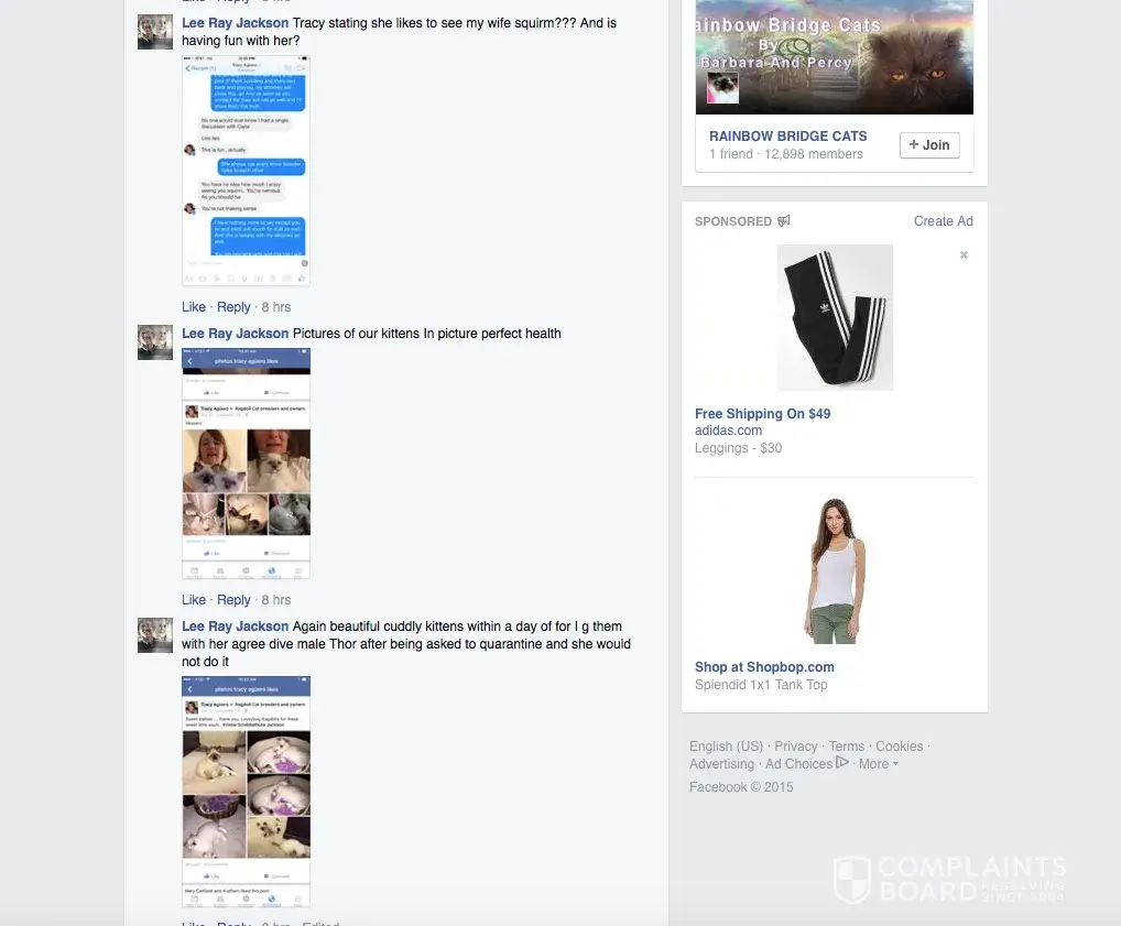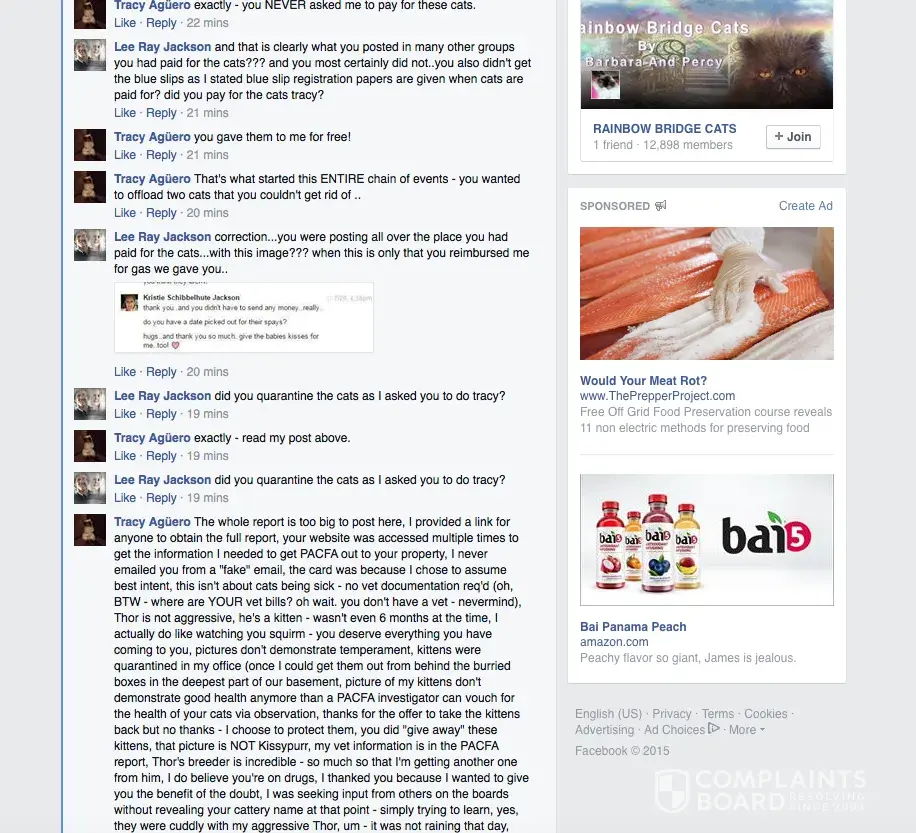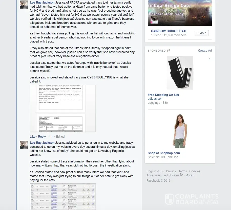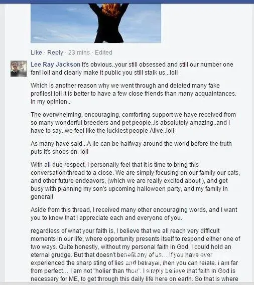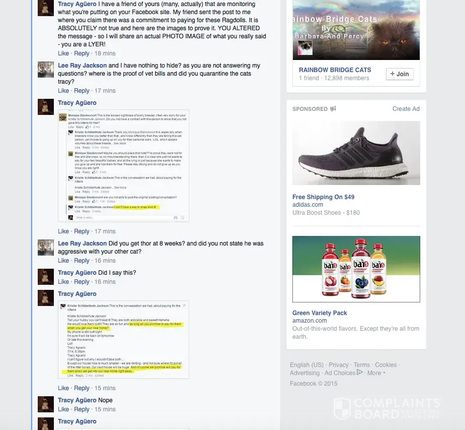 HOWEVER, It is certainly clear based I have had to defend myself Against tracy's baseless and misinformed allegations as I also have A PLETHORA of proof for court of Tracy's EXTREME irrational unstable behavior. Tracy states "An ethical breeder that didn't have anything to defend would not work as hard as she is to try to deflect the attention from her and put it on others". it's called defending my right as a human being when someone is trying to assassinate someones character especially when it's baseless allegations. Even Licensed local and government officials could see tracy was lying to get out of paying for cats!