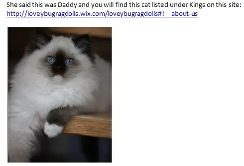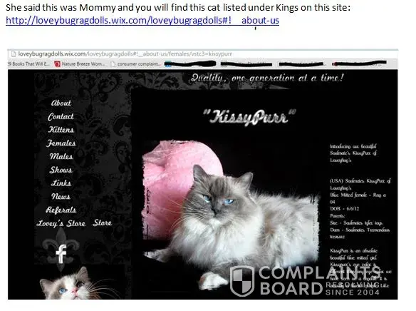 I have a friend who has been waiting for a year, was also suffered a similar situation with Kristie. I want to expose the true face of this breeder. I want to help all of the cat lovers and breeders and caution them to be careful. No one should be treated like this and cheated by this evil breeder. Please do your research on Loveybug Ragdolls.