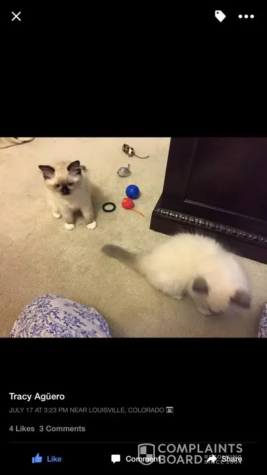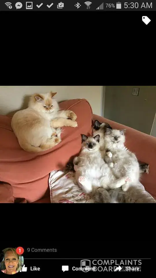 Loveybug Ragdolls’s earns a 1.0-star rating from 0 reviews and 9 complaints, showing that the majority of cat enthusiasts are dissatisfied with their new furry companions.