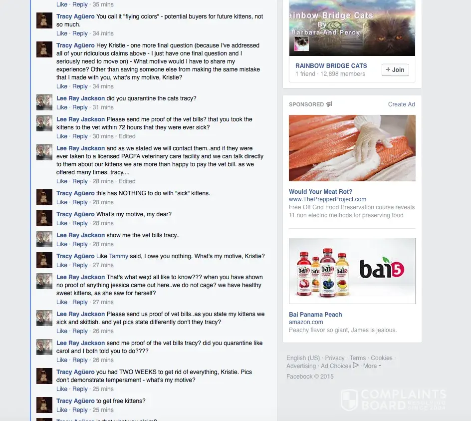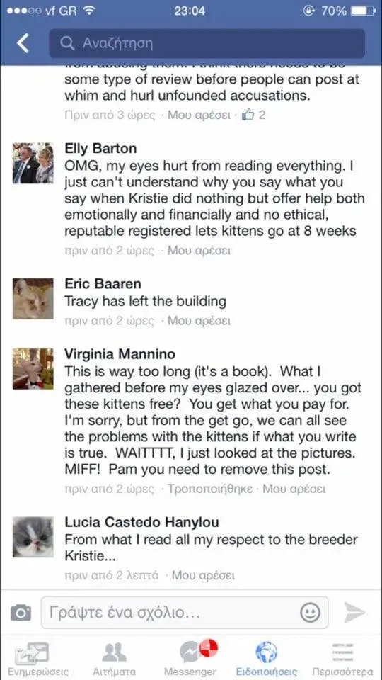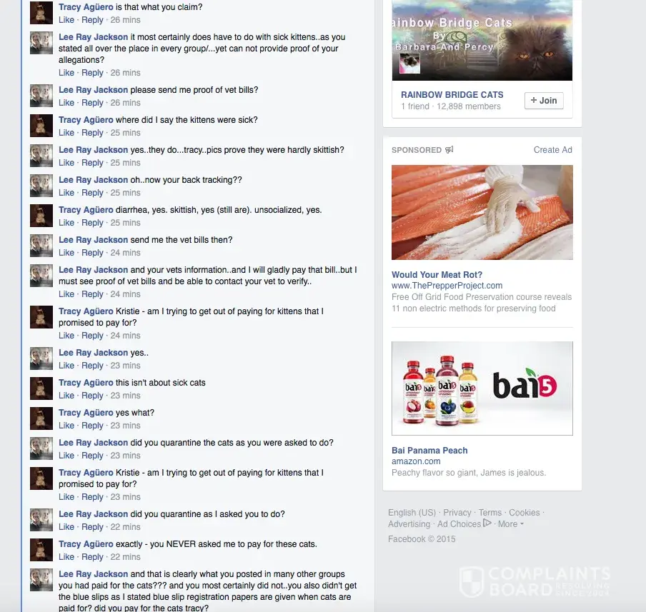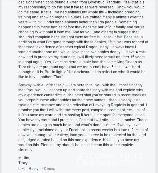 . I asked him to remove his complaint since he still wants kittens from me...and he refused.