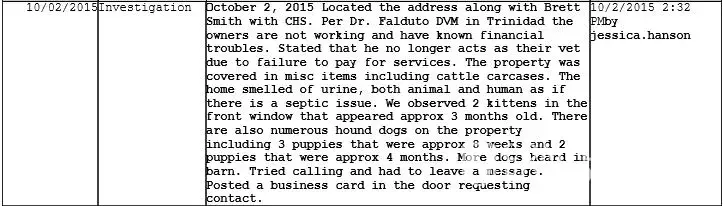 We know longer have that vet as stated as PACFA also states that vet has mold on the walls and ceiling, many years ago. a lady dropped 7-10 Large dogs OFF AT our house, WE took them to a vet. as bill of USDA will also verify, that the original owner to the dogs was supposed to pay the vet bill. we asked Bill to come get the dogs as he will also verify and stated it was too much for anyone person should have to take on. as it wasn't our responsibility to pay her vet bills. The urine smell was from a leach field far away from the house in the pasture THAT could only be smelled when the wind blew as you will also see IN THE REPORT jessica of PACFA stated. and house is VERY clean and cats in good heath!.The 2 dogs belonged to hunters as my in laws are guide and outfitters on a 40, 000 acre ranch please email me for a copy or REQUEST IT YOURSELF! I have nothing to hide..lol!