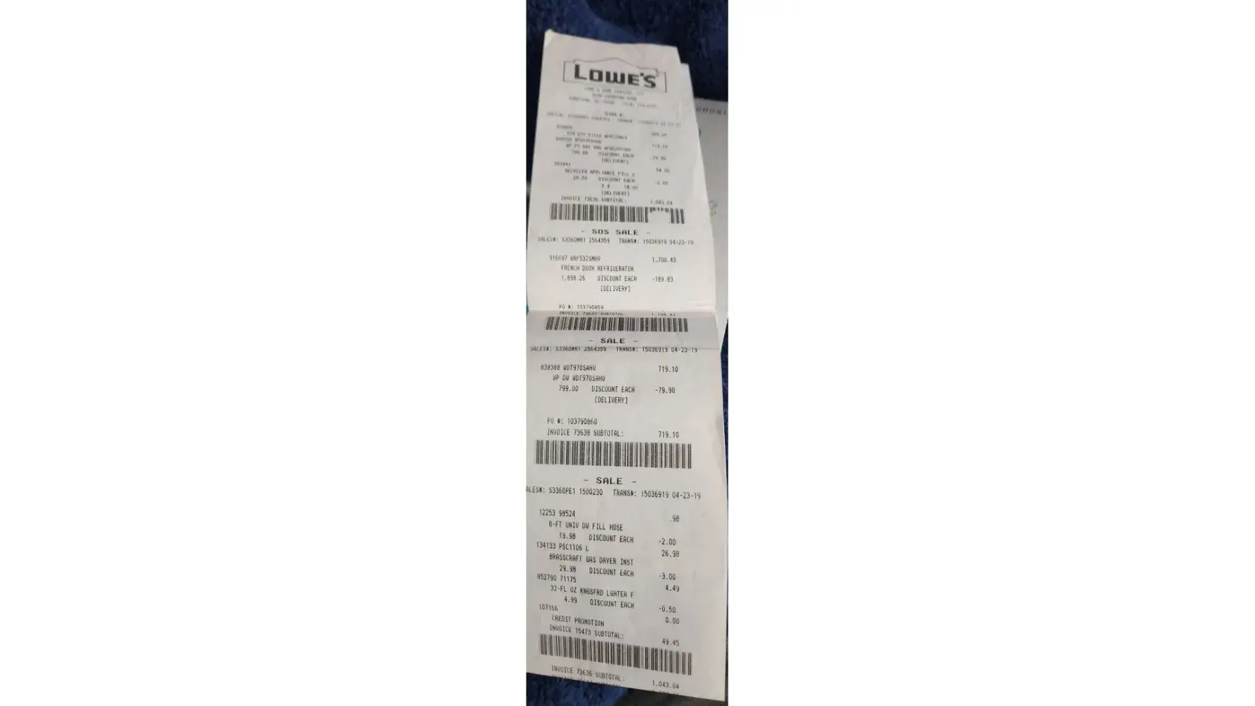 I made a purchase of $1,215.74. the most costly item was a special order mirror/cabinet for the bathroom. When I picked this up and brought it home, the mirror had a small piece broken. I never complained about this, it took some time for this item to come into Lowes I then thought it's really not that bad of a chip, I'll just live with it. I certainly could have made a very big deal of this, and brought it back, you would have to then send it back and get a new one. Which I imagine would have been a small expense for you.