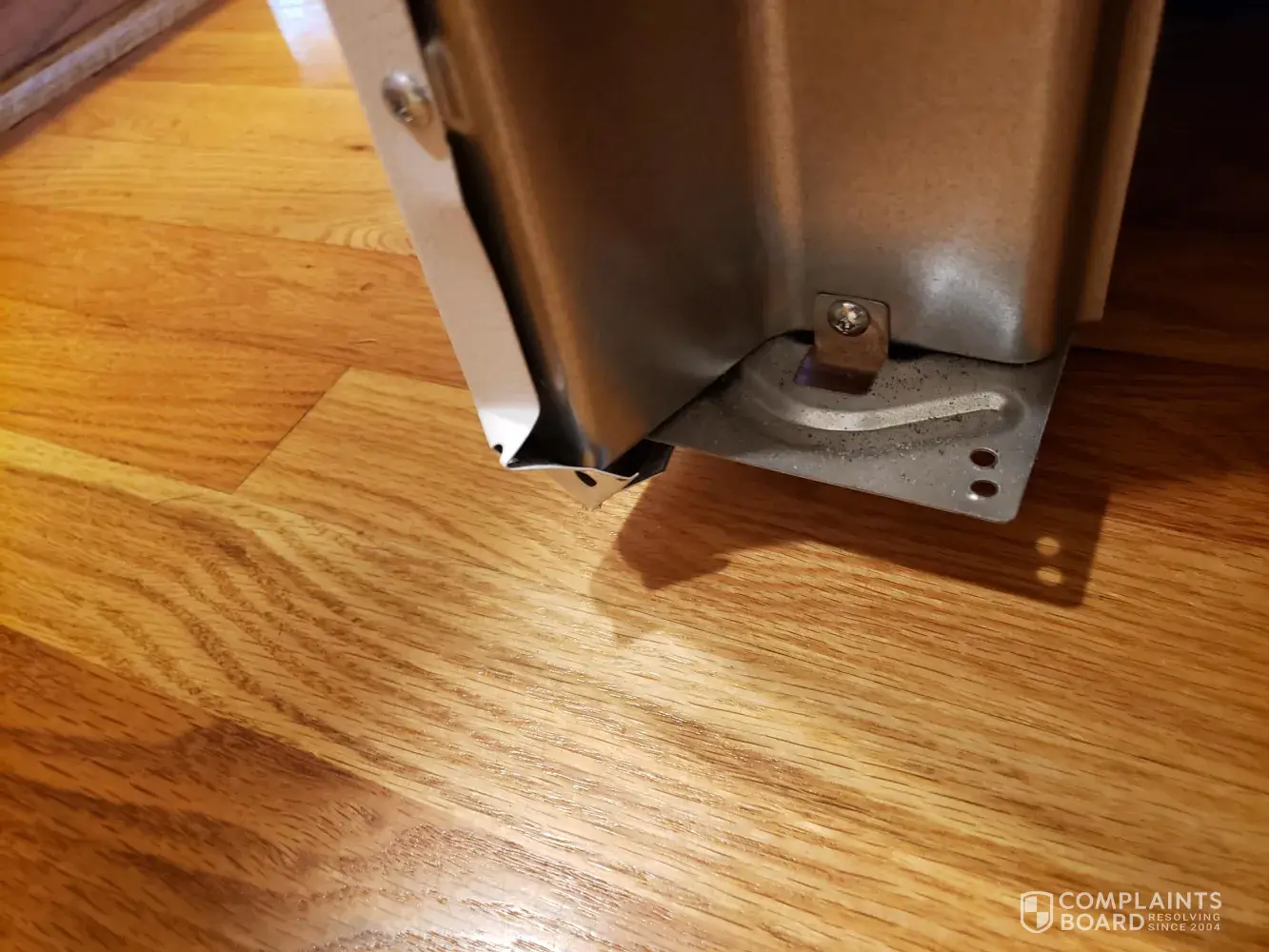 While readying the range to be carried in the delivery men tipped it to the rear damaging the rear corners of the range. Although it is minor damage their inattention did cause me to have to straighten the damaged areas.