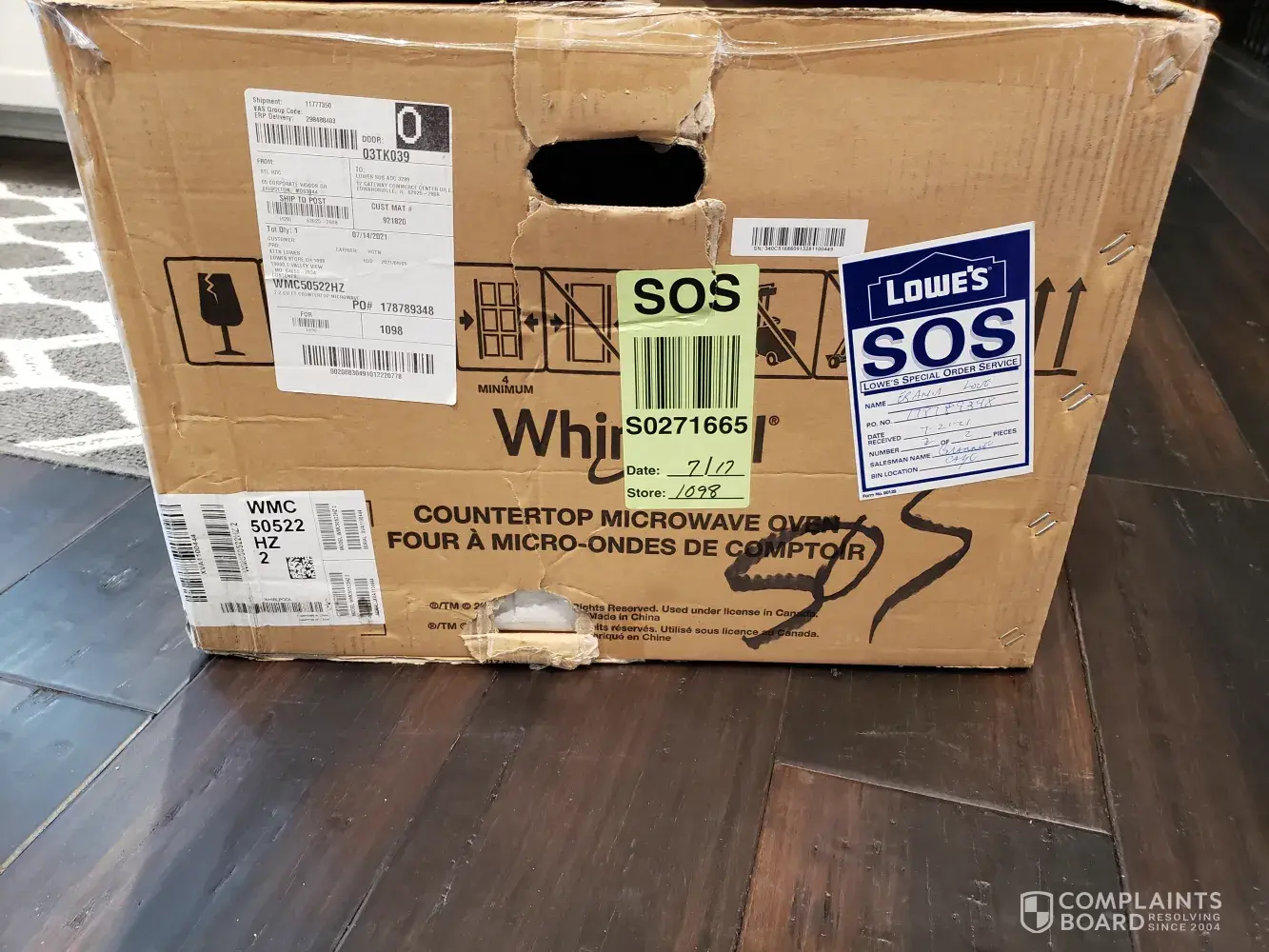 My built in GE microwave of 4 years went out and I called Lowes Customer Service to order a replacement. I was given a model number to order (online) which took 6 weeks to be delivered. The delivery was initially for 2 weeks, delayed another 2 weeks, then another for a total of 6 weeks before arriving. I called after the second post rescheduled delivery date and Lowe's Customer Service told me it was due to Covid-19 issues since the microwave was coming from the manufacturer (which ALL my appliances have come directly from the manufacturer that I've ordered in the store or on line from Lowes). Ends up the model was not a replacement for the one I originally purchased. I called GE directly and was told there was no replacement model for the original. I called Lowes with this information and was told the microwave order was longer than 30 days and I could not return it. I explained it was not my fault it took 6 weeks to return and initiated a return online to return the microwave to a local store. Once getting to the store, I ran into the same issue, but the cashier called a manager and showed him my paper work that clearly showed when I order the microwave in April 2021 that wasn't delivered until June 2021, the manager apologized for the erroneous information relative to the replacement model information from Lowes Customer Service and for the delay in shipping, then he authorized an override for the return. In the mean time I had ordered online a Whirlpool brand microwave and different kit which populated an 8 week shipping date of August. I received the appliance this past Saturday. The box was somewhat beat up, and once opened, the microwave was dented in 3 places ( both rear sides and the top right side), and the control panel is scratched! Mind you, I have been without a microwave in my kitchen for 4 months and decided to plug this one in to see if it worked. The appliance seemed to operate fine, so I decided I would rather not return it and have to wait another 2 months for a replacement, if I can receive a discount for damage. I called Lowes Customer Service first thing this morning and was told by a rep that I could only get 10% for a damaged product. I was surprised considering the damage is visually extensive! I asked to speak with a supervisor and the customer service rep told me, "Okay, but I'm telling you, YOU WILL NOT GET MORE THAN 10%!" I found his tone offensive, and requested again to speak with a supervisor. After being placed on hold for a few minutes, the rep came back and stated, "Maam, I've complete a request for someone to come out and pick up the microwave and would issue a refund". I told him, that is not the option I chose, I stated I wanted to keep the microwave and wanted a discount for the extensive damage. The rep continued to talk over me, I listened until he was done. I stated that he would speak over me and do what he wanted, I asked to speak with a supervisor and he had yet to honor that request. I was placed on hold again for awhile, then a supervisor came on the line. She too told me she had parameters that only allowed her to give me 10% for the damage (without requesting pictures, asking what the damage was, etc.). By this time, I was very upset and told her as a loyal Lowes customer who has purchased thousands of dollars in appliances, this was unacceptable. She too told me that there was ticket created for someone to pick up the microwave and a refund would be issued. I told her I was not asking for a refund, I was asking for a discount and I was tired of her and the rep railroading me into a refund! She then told me that my 10% discount would have to be on a e-gift certificate because my order was old! I asked how was my order old when I just received the product/appliance 2 days ago? She said it was placed 2 months ago. I asked was it my fault that Lowes had not delivered it for 8 weeks? She said no, but that's how it works! I find this ridiculous and very unfair to Lowes customers to be treated like this. Lowes systems, policies, parameters, and exceptions should be altered for things (i.e., pandemics, shipping delays, shipping damage, etc.) that are beyond and/or not the fault of your customers. This is not the first time I have had a 2 month delay in shipping of appliances. I custom built my house and purchased my range, fridge, dishwasher, microwave, two washers, and two dryers from Lowes, spending approximately $10K. Shipping of the range was delayed for 2 months and was not installed until 3 weeks after I had moved into the house. Though my family and I were disappointed (at Christmas holiday time), I lived with it and didn't file a complaint. Deja vu, and Lowes is treating me as if I've done something wrong. Again, for a loyal Lowes customer or any customer, this is unacceptable!