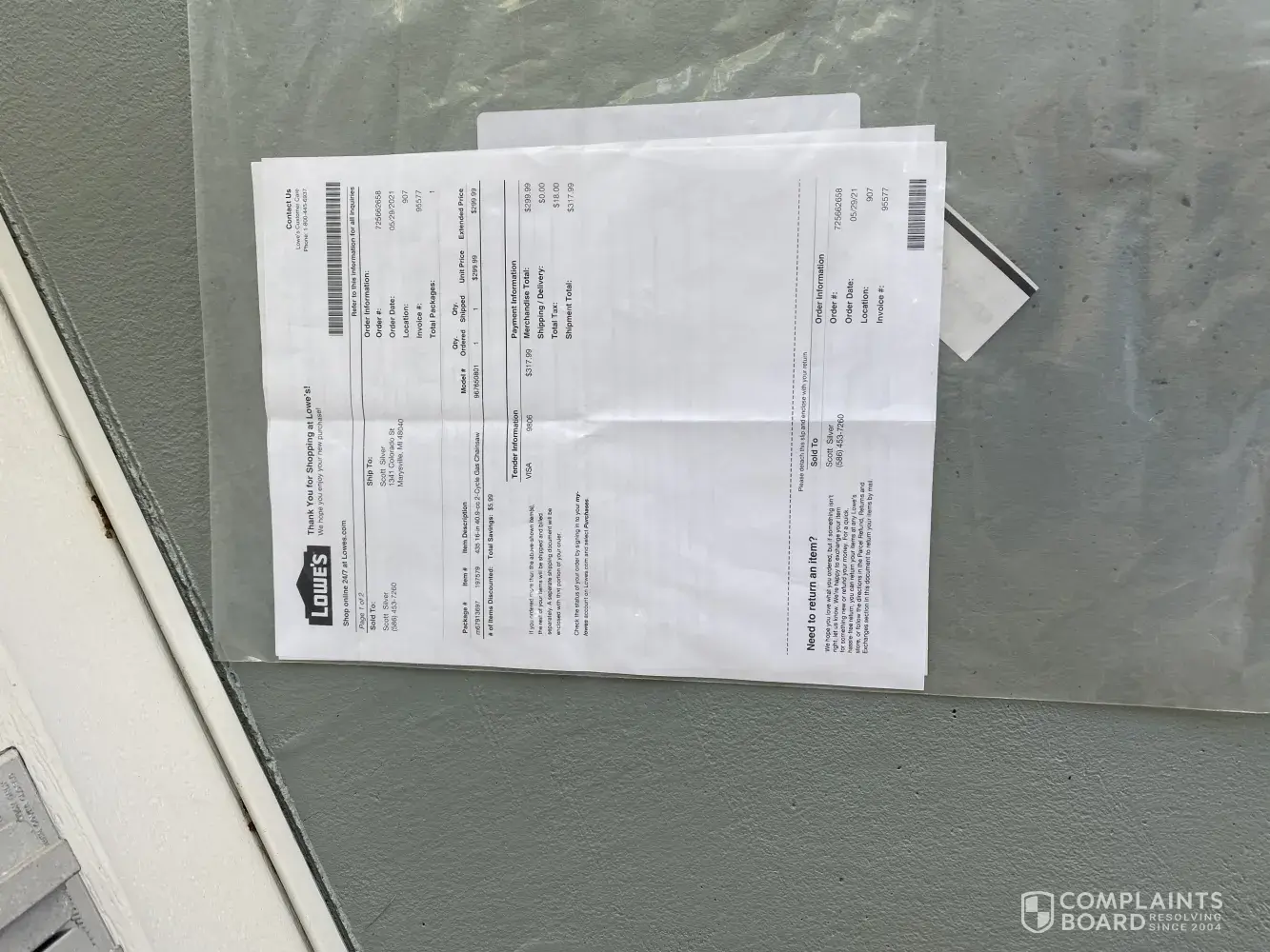 Desired outcome: Want chainsaw that I paid for delivered to home .