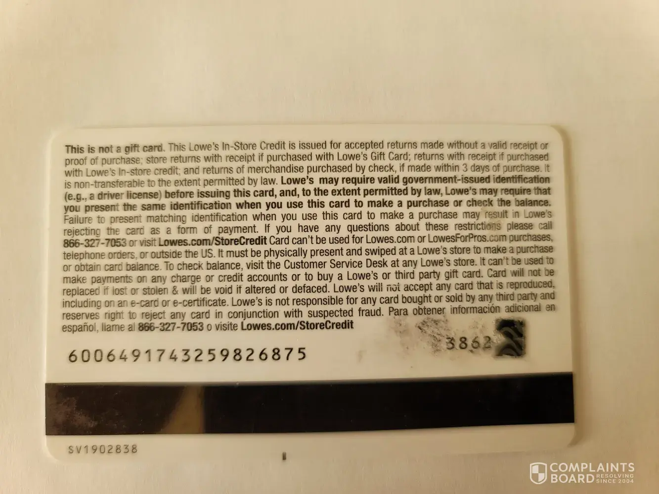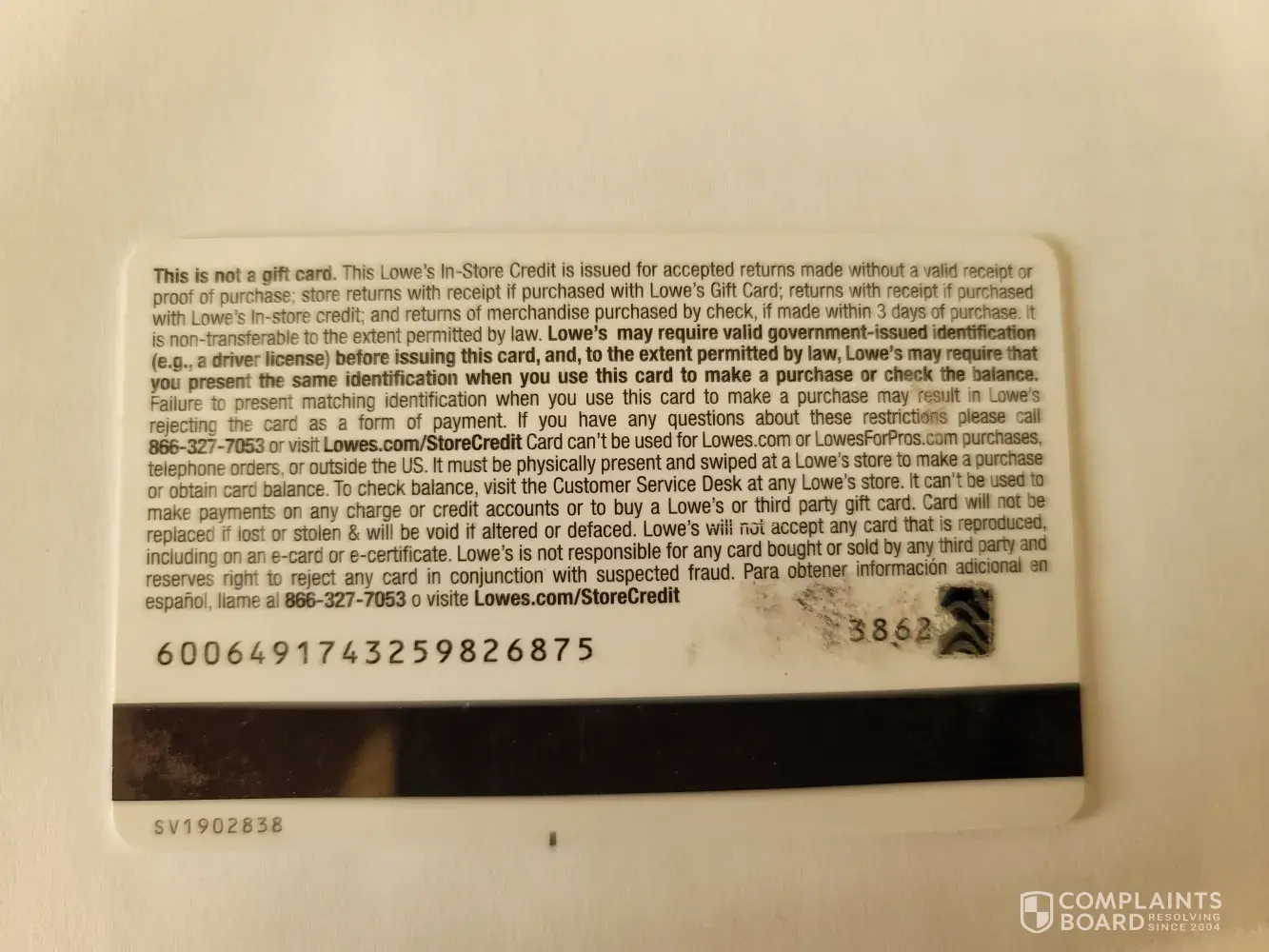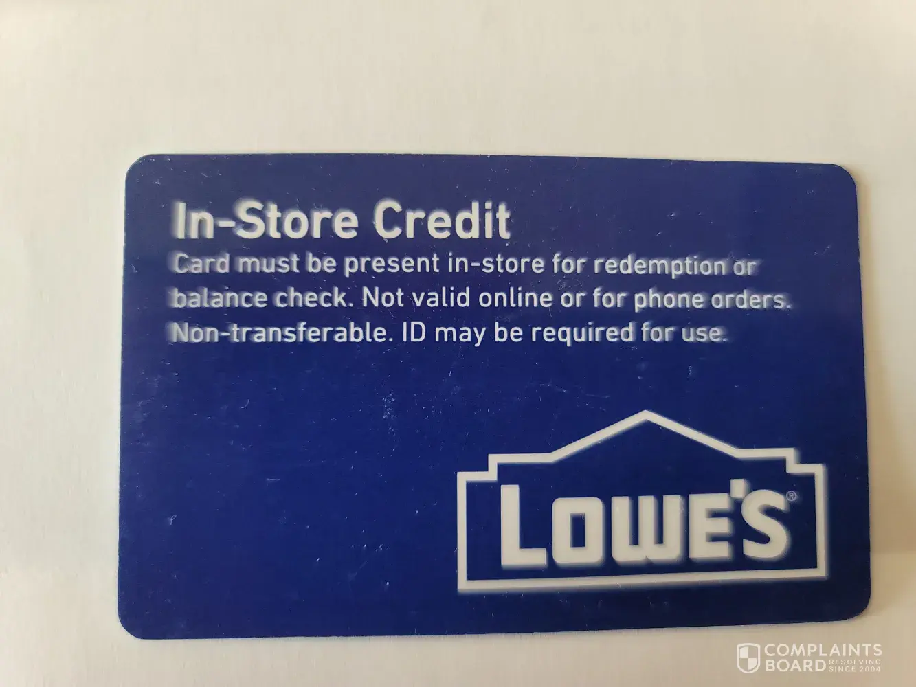 Read full complaintLowe's In-Store Credit