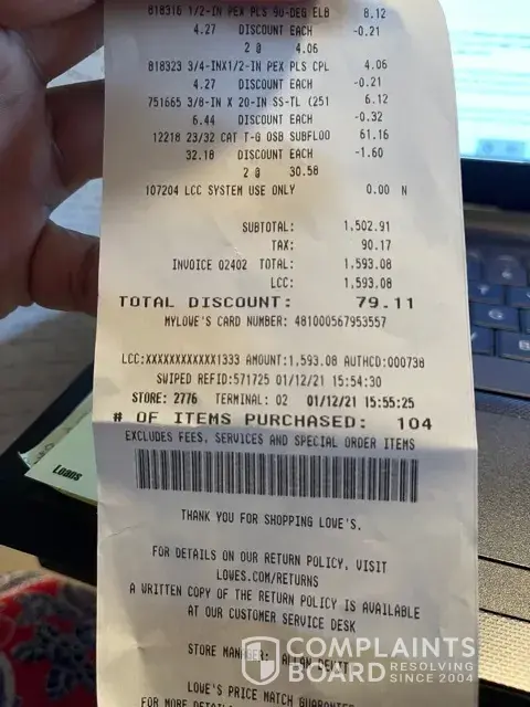 Think twice re shopping at Lowes. Got an in store credit card. I had previously gone into the store 3 times and forgot to use the card at the register. Today I remembered and used the card. I had $1.27 change left. I asked for cash. We can't do that. I spoke with the store manager. He did his damnist to avoid direct questions and I finally asked him are you refusing to give me $1.27 change. Flabbergasted he gave in as I was making a fuss. I then asked for the district manager name and phone. Again he avoided direct questions I was asking. I can give you the 800 number he repeated excessively. Again I asked for a yes or no answer. Will you give me his name? Will you give me his phone number? Bottom line... No. Called the 800 customer service number. They will take the complaint but I will get no response to my issue. They don't give a damn. You can complain, to the round file (garbage can) rude manager get away with poor service at Tustin CA. Shopping it San Francisco it is useless to call. NO ONE answers the phone. You can spend 1/2 hour calling asking for numerous departments. No one answers.