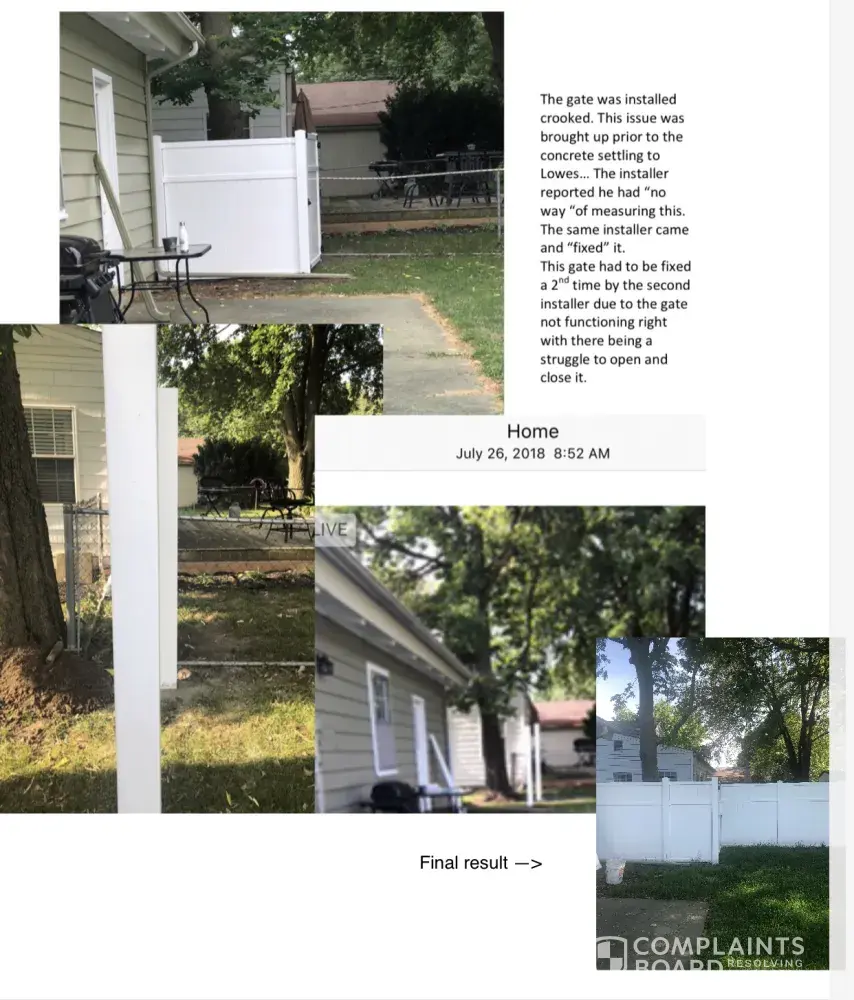 I had a fence installed for my birthday, Oct. 2018 spent well over $3500. Needless to say NIGTHMARE! The company Lowes contracted did a horrible job. Every month thereafter I've made calls for something; such as, planks not nailed down properly, gate fell off, privacy fence too much spacing. Horrible Experience! Needless to say, I contacted another company before giving Lowes a chance to fix the problem. Well they sent another contractor who I will say was more knowledgeable, however, there were additional hardware that was required. Instead of Lowes appeasing me the consumer with a courtesy of supplying these items cost of $50 or less, after all I have been through, they said I am responsible for purchasing any additional items. It's now well over 6 months and I am still awaiting the proper completion of the fence without missing any payments even though I am not satisfied. POOR CUSTOMER SERVICE and I WOULD NEVER RECOMMEND THEM FOR ANY INSTALL JOBS EVER!