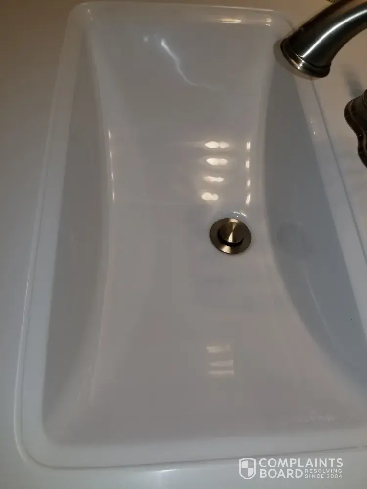 You may ask why I didn't return the sink? Possibly because I didn't want to wait another 2 months for a new one. I'm beyond disgusted with everything about this sink and now I have no choice but to live with it. I would at the very least like a refund, when in fact I should demand a new sink made to the specifications Lowes were given in the first place. This is not how I ordered it, this sink looks ridiculous. It will be cold day in hell before I ever order anything custom made from Lowes.