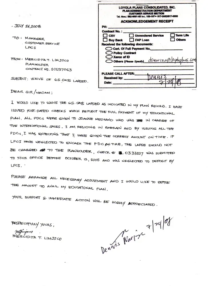 I have been staying in Bahrain for almost 17 years. I have taken a Loyola Educational Plan last 8 years ago. I have given them the post dated cheques as the full payment of the educational plan for my daughter, which I thought the best way to get rid of the hassles of monthly remittance surcharge. Since then I have not heard from LPCI (Loyola Plan...