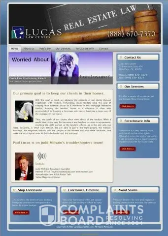 I just found a site www.oiagent.com - I attached the jpg file from this site that shows the archived LucasLawCenter.com with Scam Tips and with the CONSUMER ADVOCATE Judd Mcilvain appearing on the front page. The site make connection that Judd also supported this Law Firm directly by linking to this complaint concerning Mr. Mcilvain and the LucasLawCenter: /URL removed/ ... This site claims that the "webmaster", developer and host of the site LucasLawCenter.com is Mr. Jay Bertell (maybe Bartel, Bartell, I guess he has MANY name - so not certain what is his real name?) This man supposedly SCAMMED this site's President April Kelly AND the consumer advocate Judd Mcilvain that referred her to this J fellow will NOT help her against his scams against her. I found a forum in which it stated that Mr. Mcilvain also did radio shows on this firm to endorse them, plus Judd Mcilvains site www.TroubleShooterJudd.com (a site that Jay hosts and owns the domain of) links or links back to one another (something like that, not certain?) Anyway, the story goes that Judd Mcilvain recommended his hostmaster and "friend" Jay Bertell to this women with a disabled son who wanted to make an online company (not certain what the site was suppose to be thou, maybe insurance?) crazy dramma... anyhoo... this man supposedly stole this sites (meaning oiagent, Mrs. April Kelly) copyrighted software and SOLD IT TO THE HIGHEST BIDDER and Judd will not step in, nor acknowledges that he recommended Jay to this woman. AND THE SITE ALSO SHOWS THIS MAN HAS A GUN IN ONE OF THE TOP PHOTOS AND CLAIMS HE IS A HIT MAN! Or maybe he was a hit man? Anyway Mrs. Kelly found other Jay hosted and owned sites that alarmed her and when she tried to questions Mr. Mcilvain, he refuses to contact her back! And get this Jay supposedly claims he knows who killed JFK or something like that... so confusing... anyway this chap has conned many even the famous horse whisperer Monty Roberts or which he was convicted of extortion with the help of an FBI tapping of Jays extortion against Mr. Roberts! Also there have MANY WIPO cases against Mr. Bertell for internet extortion and uses domains slander to accomplish this (not to mention some of the cases he is using FALSE names like Bill Keiths)... This is sooooo crazy! I am still reading all the info, so I am not certain I have this all right, but it as close as I know at this point. Anyone know more about this?