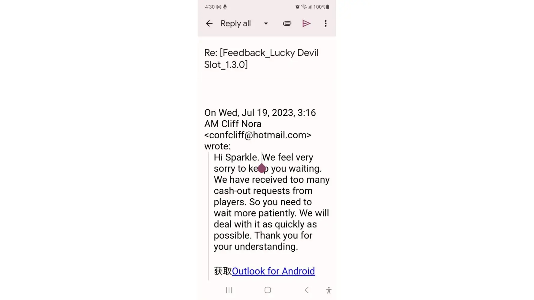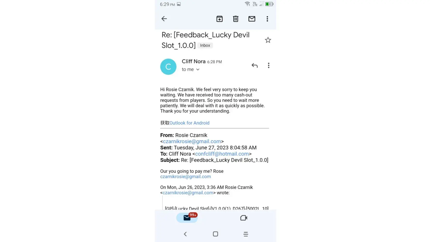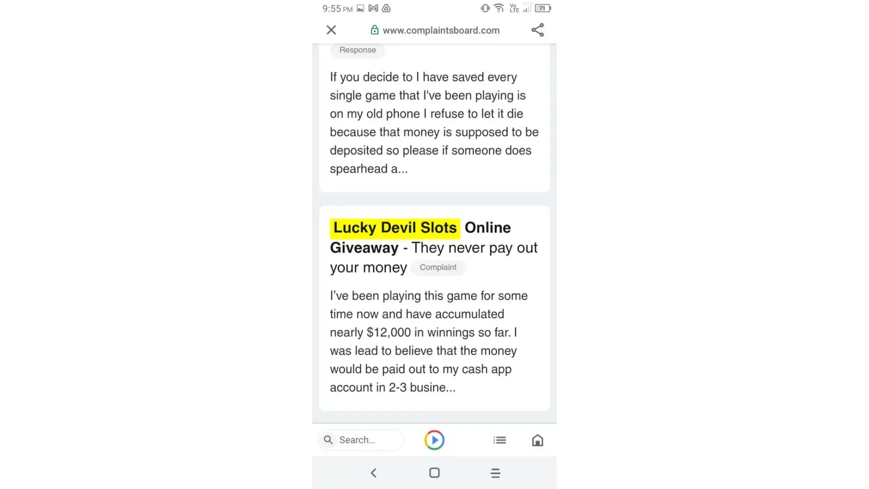 Played Lucky Devil Slots game and other games by this same developer for the last four months that were pending in the queue payable to me but have mysteriously disappeared from my Cash App Account and my PayPal Account I've tried emailing them for the last week numerous times and have not received a reply back I've contacted PayPal and they have no pending payments in the queue waiting to be deposited into my account They do not provide a customer Service Number The total amount due me from Lucky Devil is $10000+