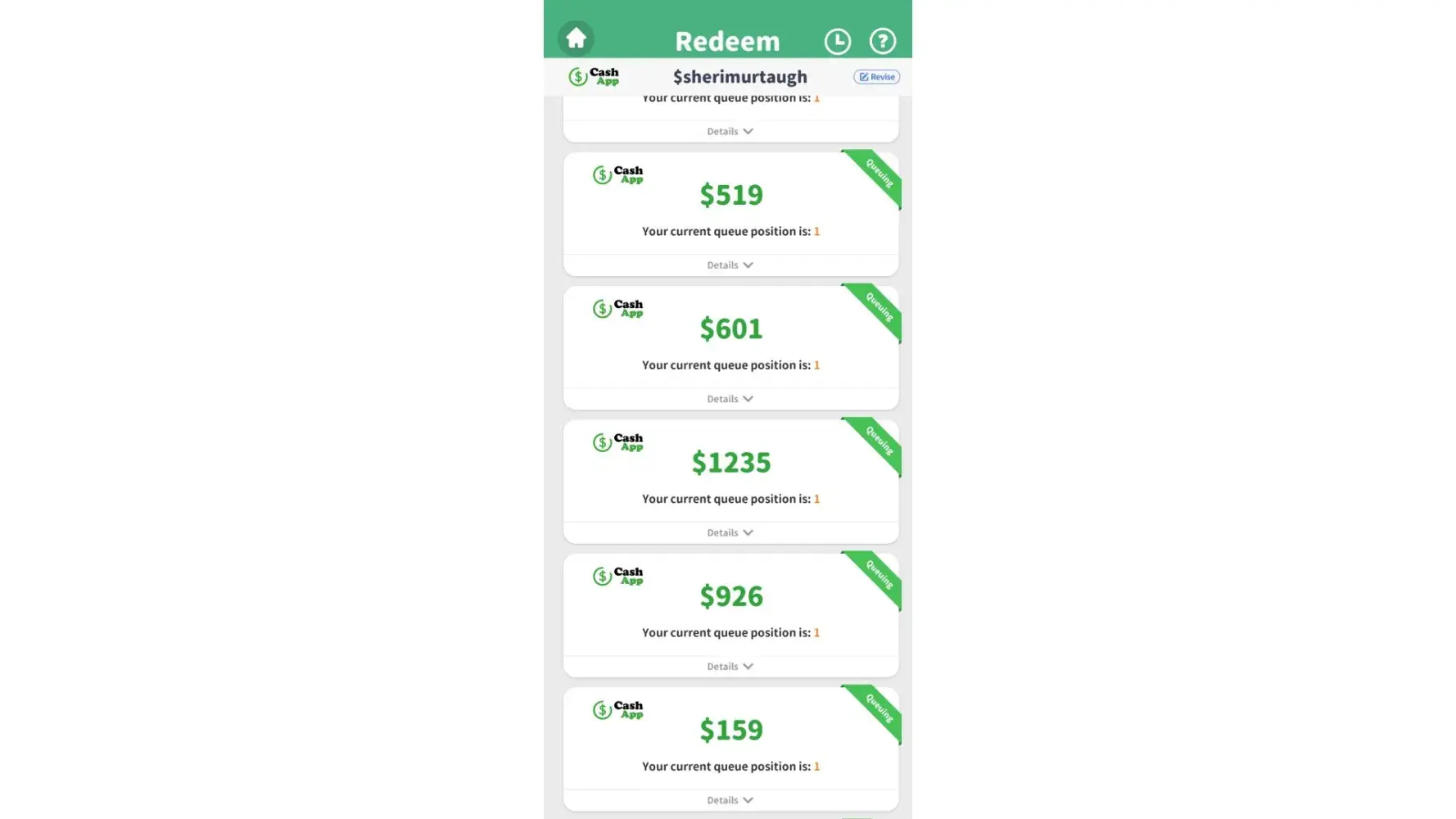 I am having doubts about ever receiving any money from them. I have spent hours upon hours spinning to win as well as looking at numerous ads to accumulate money for payout to my Cash app account. Then I find out that I’m behind thousands of people before I can collect my winnings. When they say 2-3 business days then that’s when they should pay and not have you in a queue behind a multitude of people. Either you have the money or not!