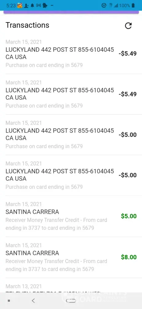 LuckyLand Slots fraudulent charged transactions to my debt card