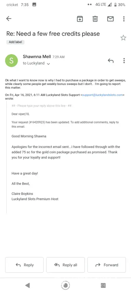 LuckyLand Slots redemption not received