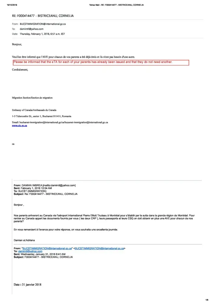 1) Why was my father returned to Bucharest despite having an electronic travel authorization issued by the Government of Canada since February 1, 2018 - see attachment - as well as a valid passport?