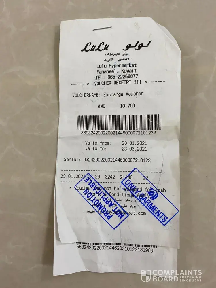 When I wrote about this to the customer service, on the same date : [protected]@luluhypermarket.com, no one even answered me!