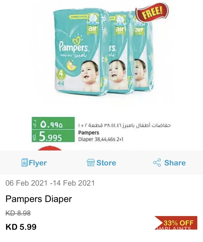 Today i went to lulu hyper dajeej kuwait as there is an offer for pampers at 5.99 kd ( flyer attached below ) . but from the billing they said it is 6.99 kd, i contacted the responsible staffs including supervisor there and they didnt gave an answer for this . Some staffs said this offer is for online only and some other said offer is over . From the flyer it is clear that offer is valid upto 14th february . I came for this offer and i bought another things for 30 kd . If it is your marketing strategy i appreciate it . Keep it up