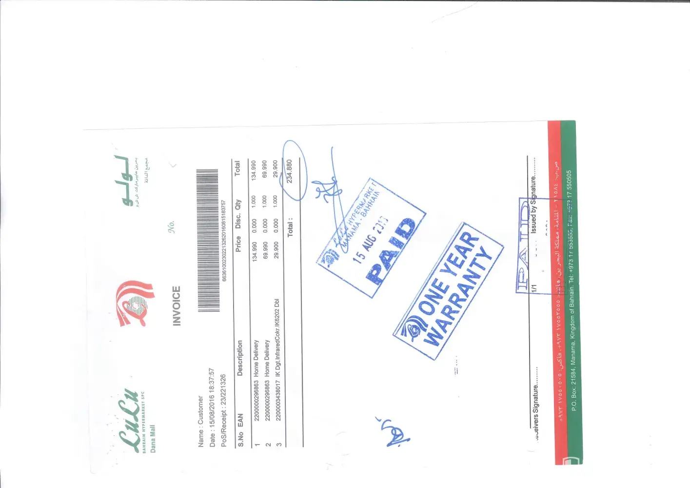 2. Order No. Number [protected] was for Samsung Galaxy A21S SM-A217FZBJXSG 128GB Blue, however till now I did not receive any mobile even I am checking with the cargo company and they responded to me that they did not get any thing from lulu hypermarkets.