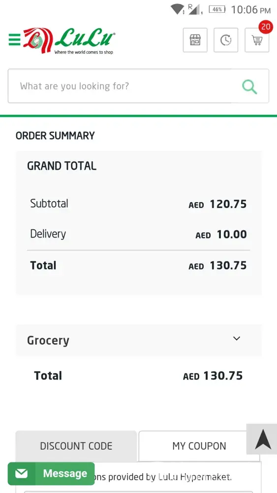 I did purchase grocery and vegetable items through online but i didn't receive any message or email from lulu online . But i got message from bank Your Cr.Card XXX8856 was used for AED208.15 on 23/03/2020 08:33:38 at LULU HYPERMARKET LLC, [protected]-AE. Avl. Kindly update me what is the status of my order.