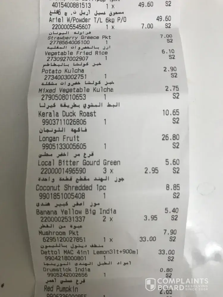 Another issue : in the advertisement it is mentioned egg price is 0.890 in place of 1.195 however in the bill they charged 1.195. this is not about money or item how many such item we should check the price if u charge incorrectly.my bill that day was 53 kwd.