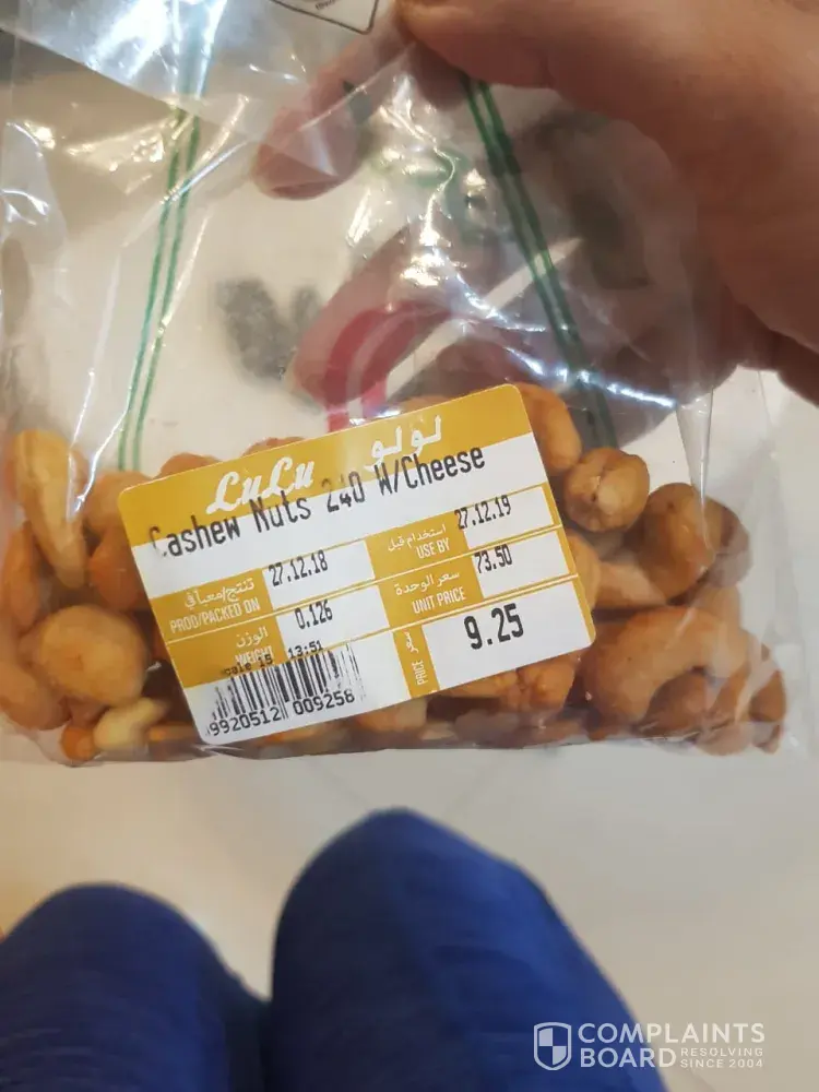 On 27 December 2018 we shopped in Lulu Barsha branch . The expiry date clearly states use by 27 December 2019 . Yesterday We opened the packet and on consuming we saw living worm in the cashew . This is as serious health concern and a huge tarsnish to the Lulu brand . I am appauled by the quality . I have taken pictures and also have a video that displays the same . I need immediate action taken on this . Our health was effected too. You need to call me ASAP on [protected] or [protected] before I escalate this